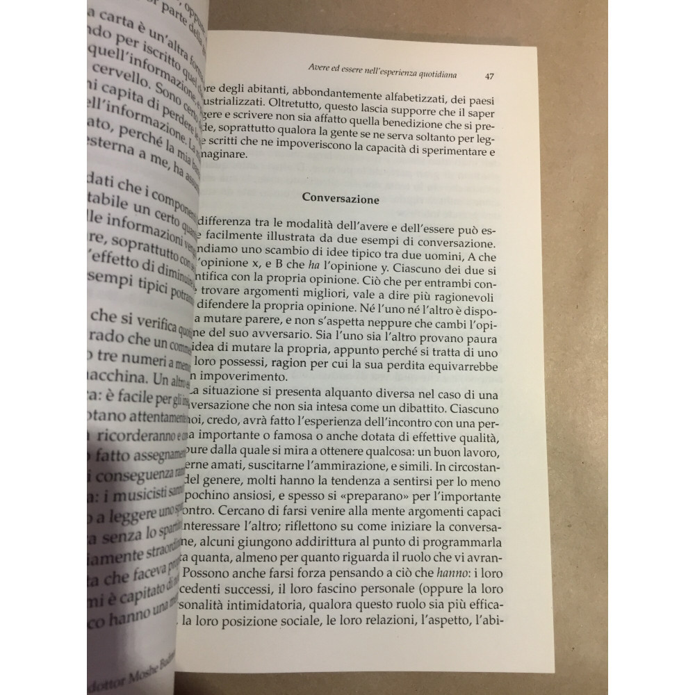 La prevalenza della modalità esistenziale dell’avere ha determinato la situazione dell’uomo contemporaneo: ridotto a ingranaggio della macchina burocratica; manipolato nei gusti, nelle opinioni e nei sentimenti dai governi, dall’industria, dai mass media; costretto a vivere in un ambiente degradato. Contro questo modello dominante, Fromm delinea le caratteristiche di un’esistenza incentrata sulla modalità dell’essere, in quanto attività autenticamente produttiva e creativa, capace di offrire all’individuo e alla società la possibilità di realizzare un nuovo e più profondo umanesimo.