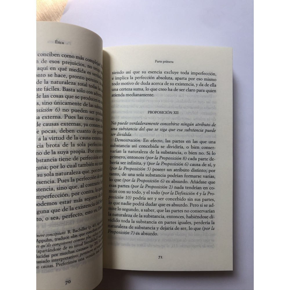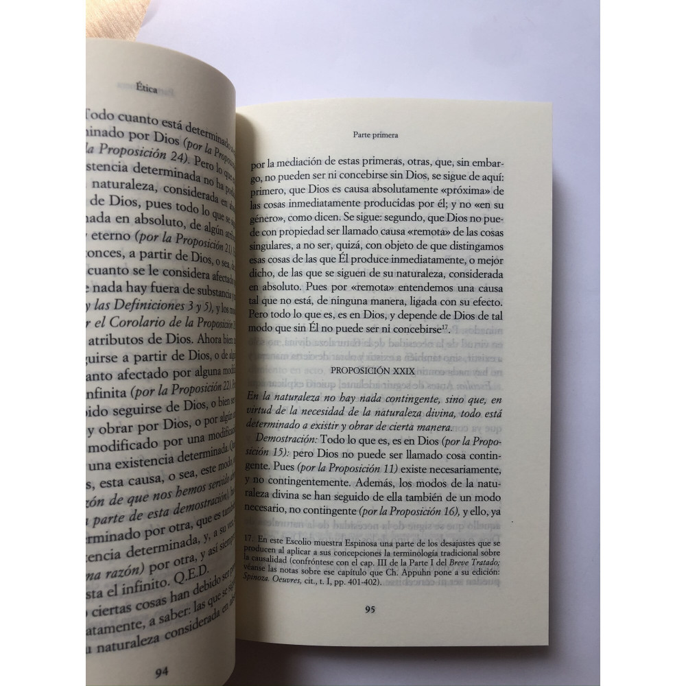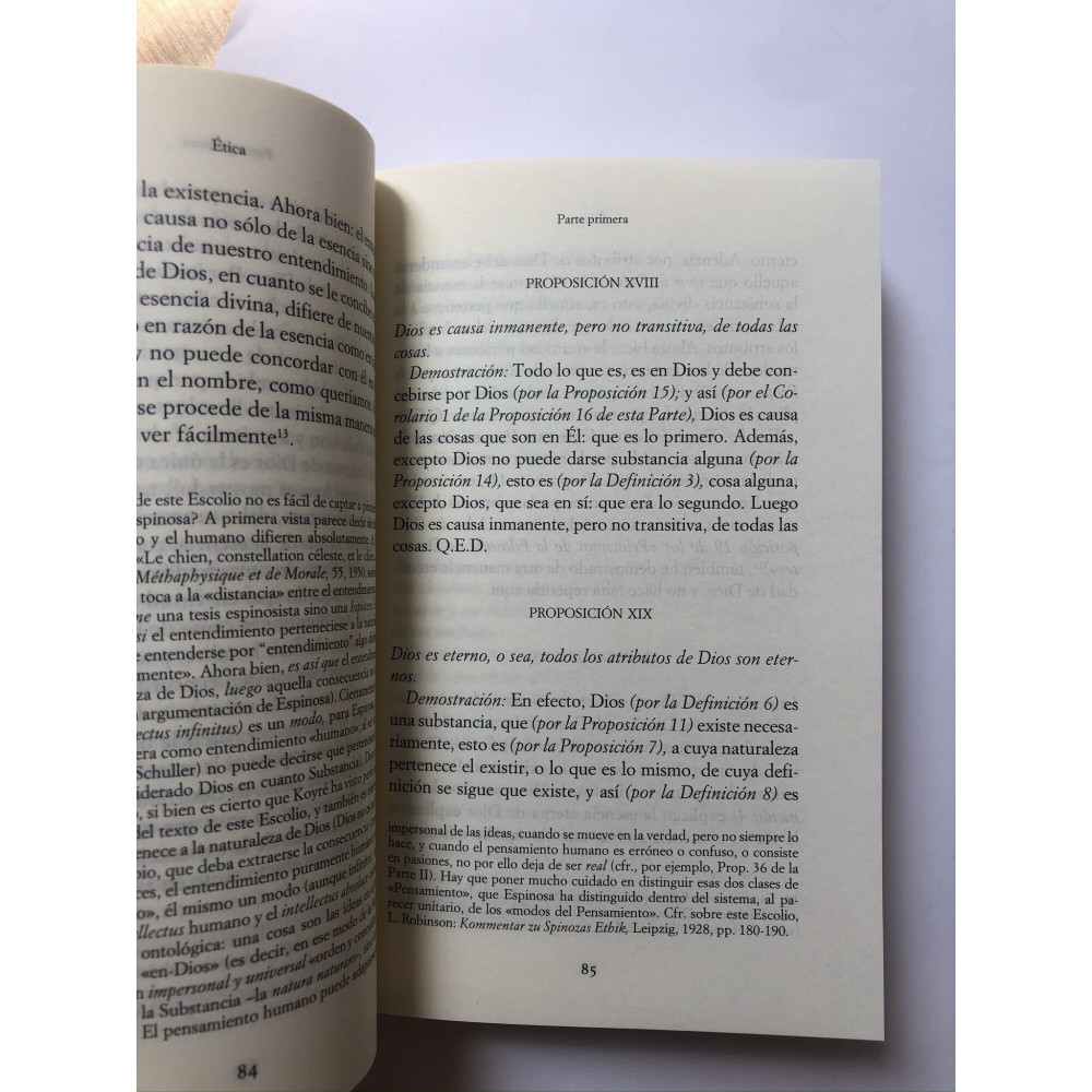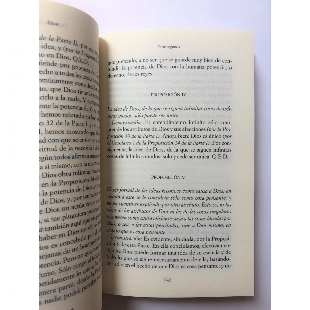 Publicada pĂłstumamente en 1677, la “Ética”, obra compuesta como un conjunto de Definiciones, Axiomas, Postulados, Leyes, Proposiciones y Escolios al modo geomĂ©trico, ha sido interpretada por la posteridad, pese a esta supuesta objetividad, de manera multiforme, habiendo despertado, más que desacuerdos frĂos con la verdad de sus asertos, emociones poderosas. Esta ediciĂłn de la obra cumbre de Baruch Spinoza (1632-1677), personalidad intelectual cuyo pensamiento y figura han sido clasificados de las formas más dispares, segĂşn la perspectiva que lo ha sometido a análisis, corre a cargo del profesor Vidal Peña, traductor, prologuista y anotador del volumen.