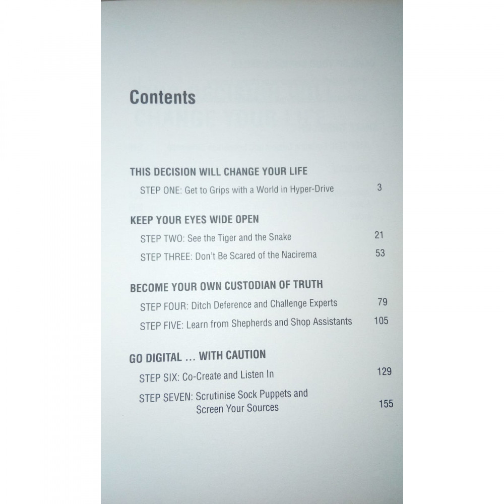 Wide Open' Noreena Hertz does for decision-making what Daniel Kahneman did for thinking.Why should you be wary of experts Are emails destroying your ability to think How do you know which sources of information are credible Whose advice should you trust'Eyes Wide Open 'will help you through the data deluge and show you how to make better and smarter decisions.By weaving together cutting-edge research with real -world examples from Hollywood to Harry Potter. NASA to World War II spies. Hertz constructs a path to more astute and empowered decision-making in ten clear steps. With razor-sharp insight and an instinct for thought-provoking storytelling. she offers counterintuitive . effective guidance for making better choices-whether you are a businessperson. a professional. a patient. or a parent.