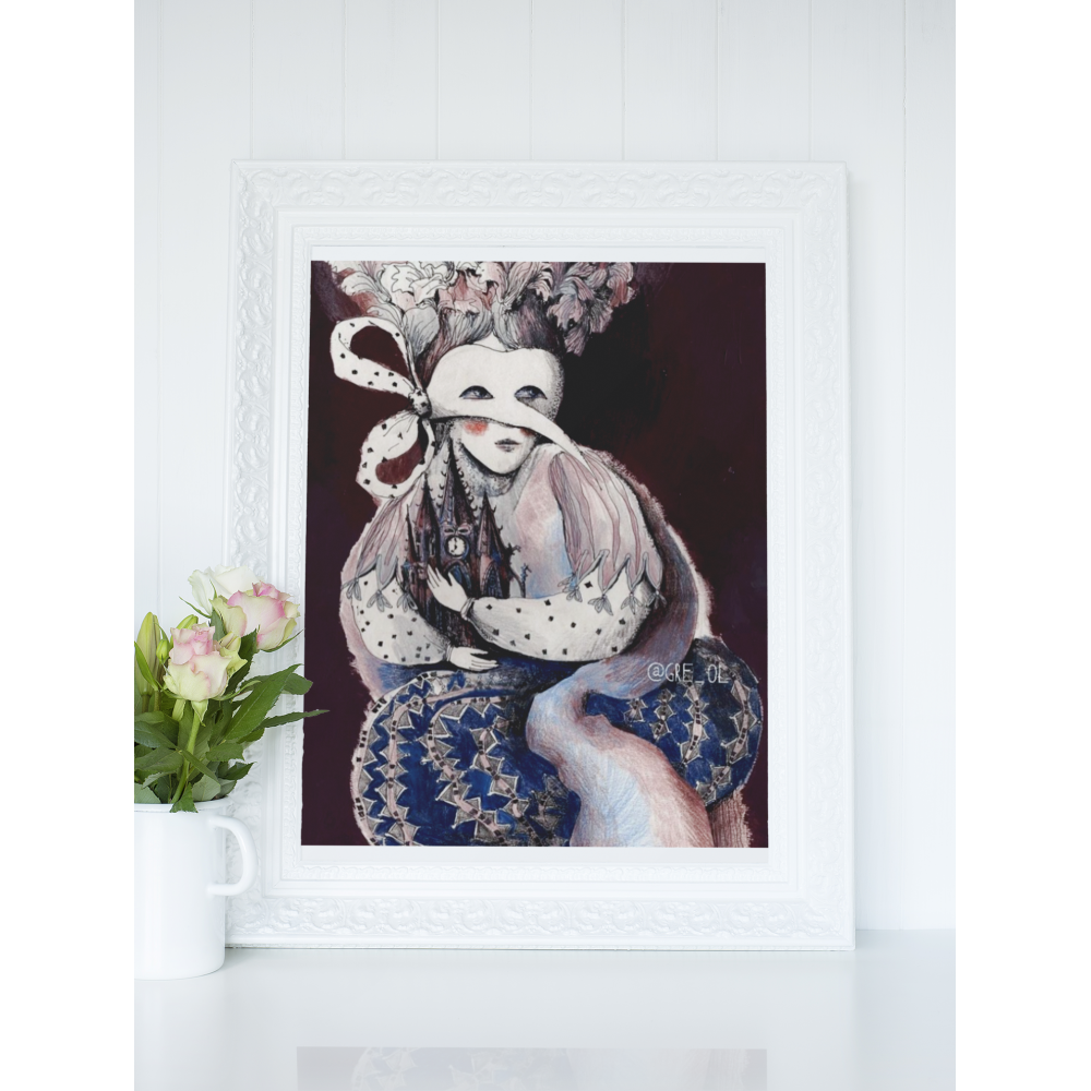Ilustrație de artista Olga Grebennik, reprodusă pe hârtie fine-art mată, texturată.