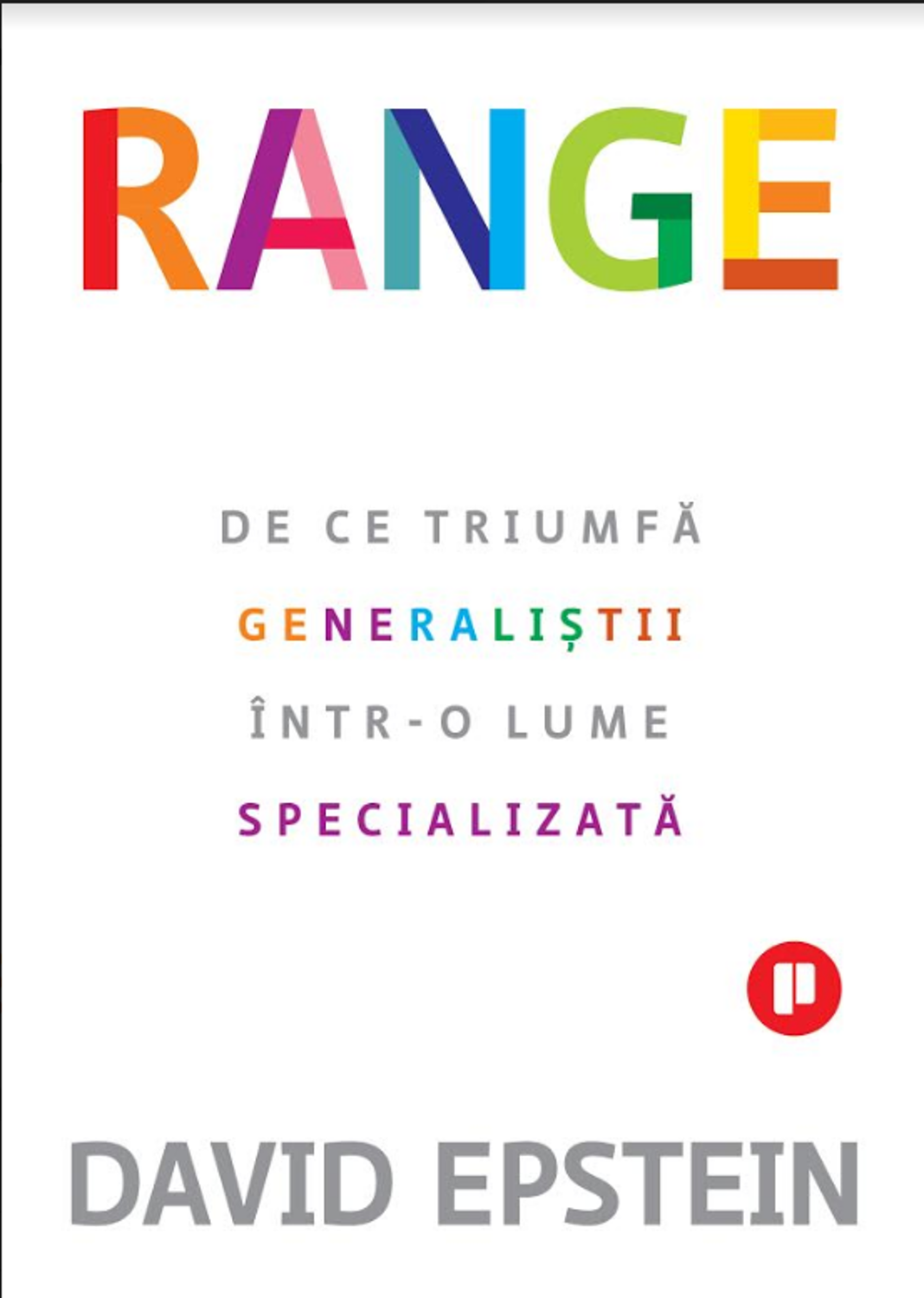 Prea multă vreme am crezut într-o singură cale spre excelență. Începe devreme, specializează-te repede, țintește eficiența. Dar în această carte David Epstein arată că drumul spre excelență arată cu totul altfel în majoritatea domeniilor. Explorează în toate direcțiile, trăiește nenumărate experiențe, fă ocoluri și experimentează fără odihnă. Range este o carte actuală și importantă, o lectură esențială pentru manageri, părinți, antrenori și pentru toți oamenii preocupați de îmbunătățirea performanței. — DANIEL H. PINK, autorul cărților Când, Drive și A vinde e omenește