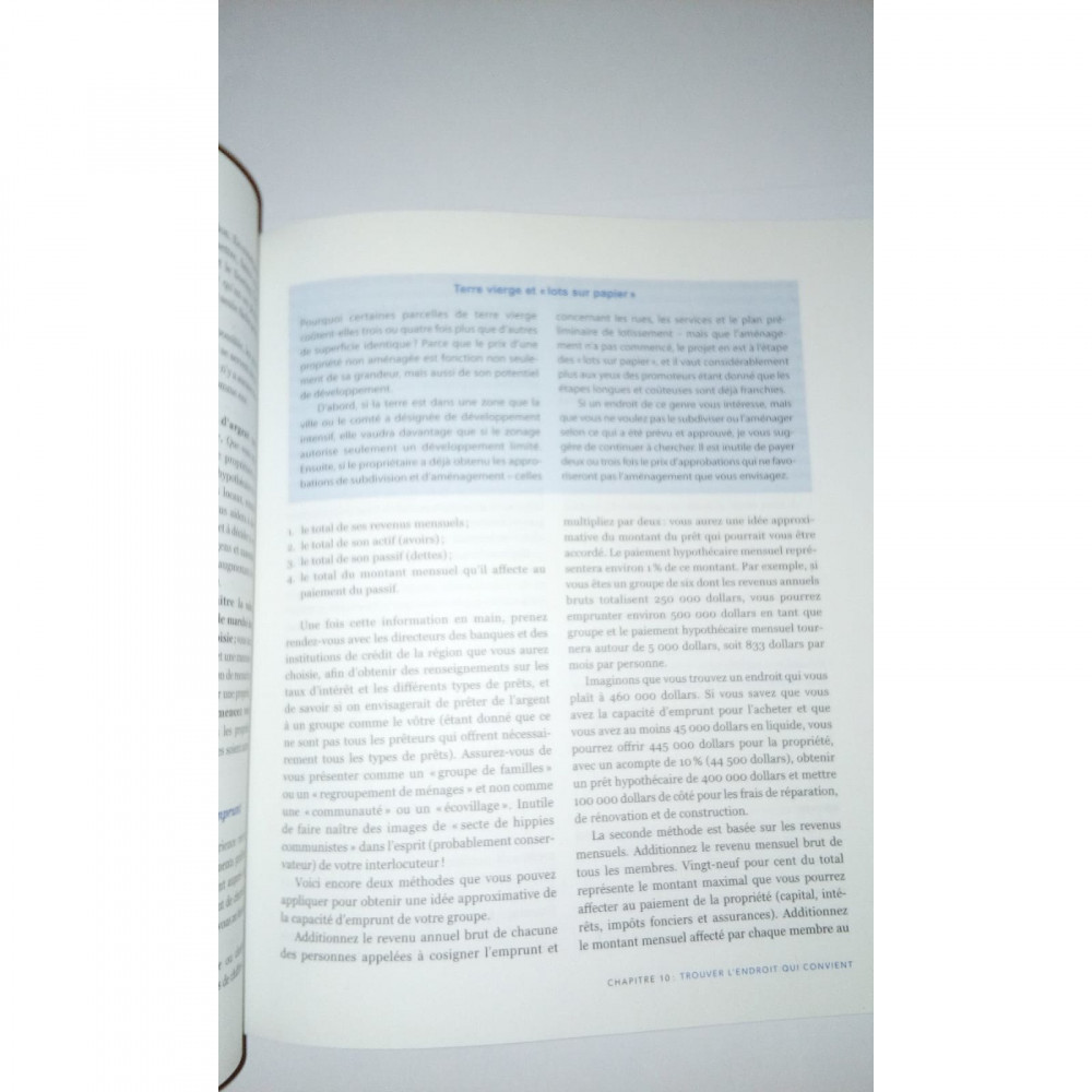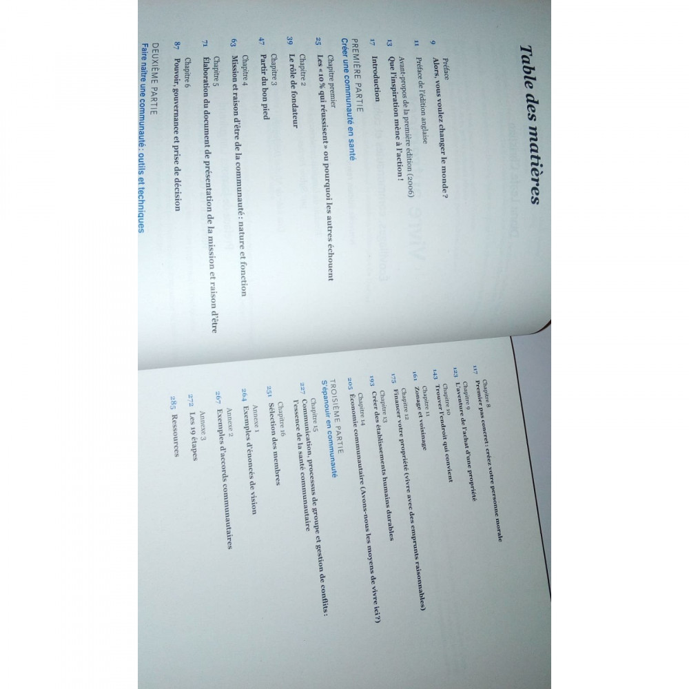 Il n'est plus possible d'ignorer le changement majeur qui s'opère dans les consciences et dans le regard que les humains portent sur eux-mêmes, et sur leur mode de vie destructeur. Aujourd'hui, un nombre croissant de personnes cherchent un moyen de vivre en harmonie avec leurs valeurs et avec la nature. En plus des coopératives d'habitation, saviez-vous qu'il y a un nombre croissant de projets d'écovillage ? Cet ouvrage de référence se base sur l'expérience de dizaines de pionniers-fondateurs pour proposer des outils concrets qui vous aideront à concevoir, organiser et poursuivre votre projet audacieux, en évitant erreurs et pièges. Cette mine d'information recueillie par une icône du mouvement des écovillages démontre la viabilité de ces derniers. Cette nouvelle édition, revue et mise à jour par l'auteure (le chapitre sur "Pouvoir, gouvernance et prise de décision" a entre autres été revu complètement par celle-ci), a fait l'objet d'une refonte intégrale de la maquette intérieure et est bonifiée des illustrations de Marie Bilodeau.