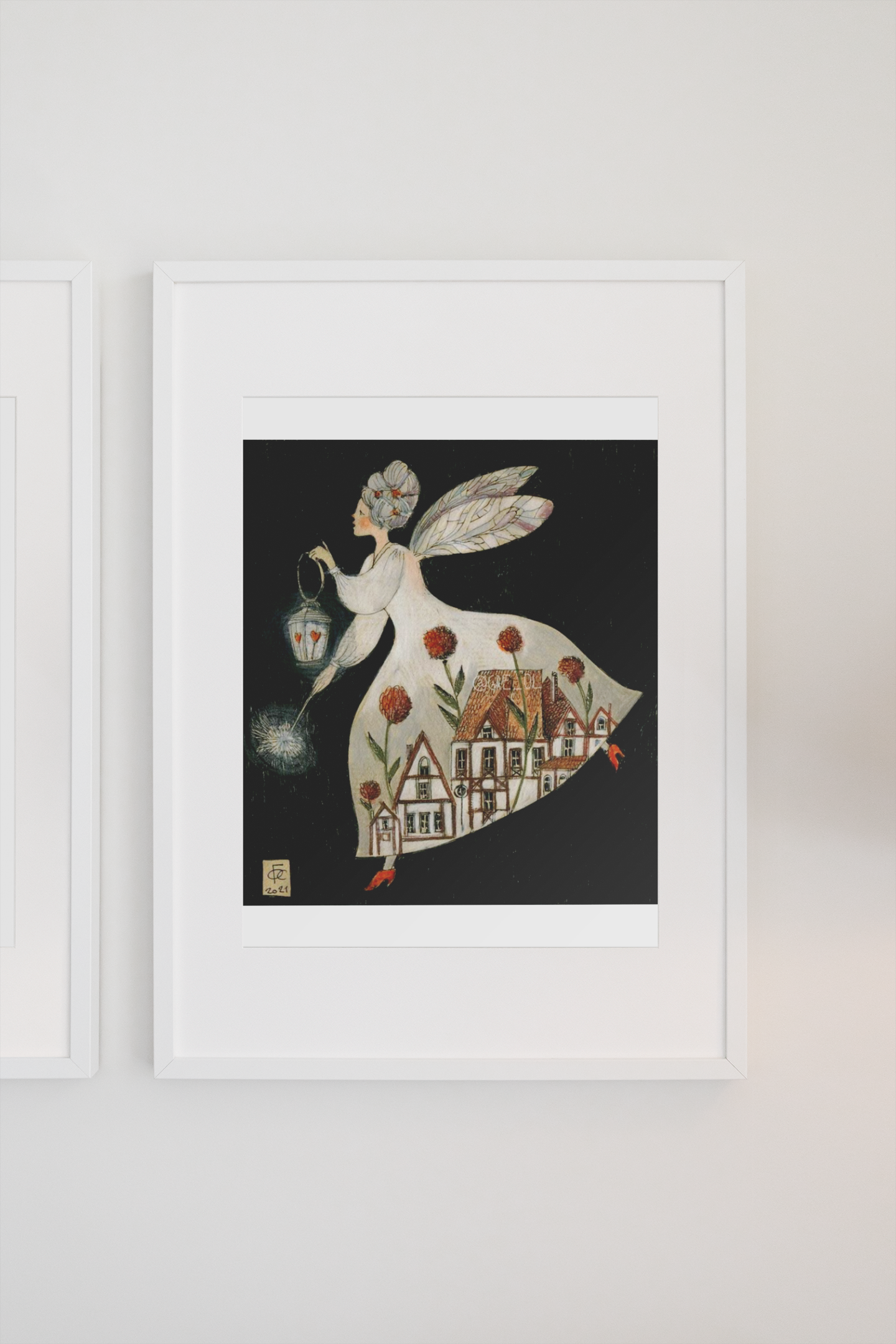 Ilustrație de artista Olga Grebennik, reprodusă pe hârtie fine-art mată, texturată.